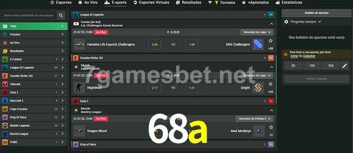 A aposta 68a oferece aos jogadores a experiência mais conveniente de apostas em eSports!